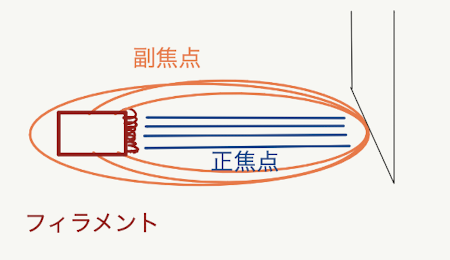 通常のX線管の陰極構造に、格子電極が付加された構造をもつ。
